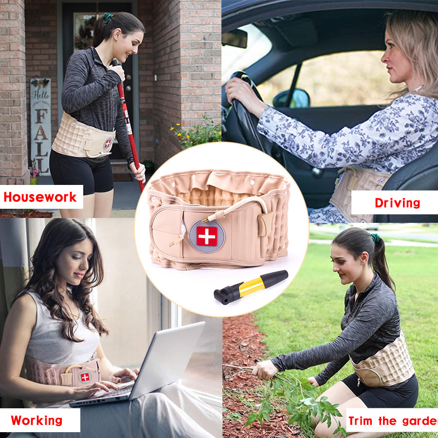 2.BACK PAIN RELIEF : Through traction, reduce the burden around ligament, bring good rest for the damaged lumbar fibrous ring. Stretch & relieve tight lower back muscles and relieve the pain such as degenerative discs, hyperglycemia of lumbar vertebra, long time driving or sitting, scoliosis and anesthesiologists and more.
