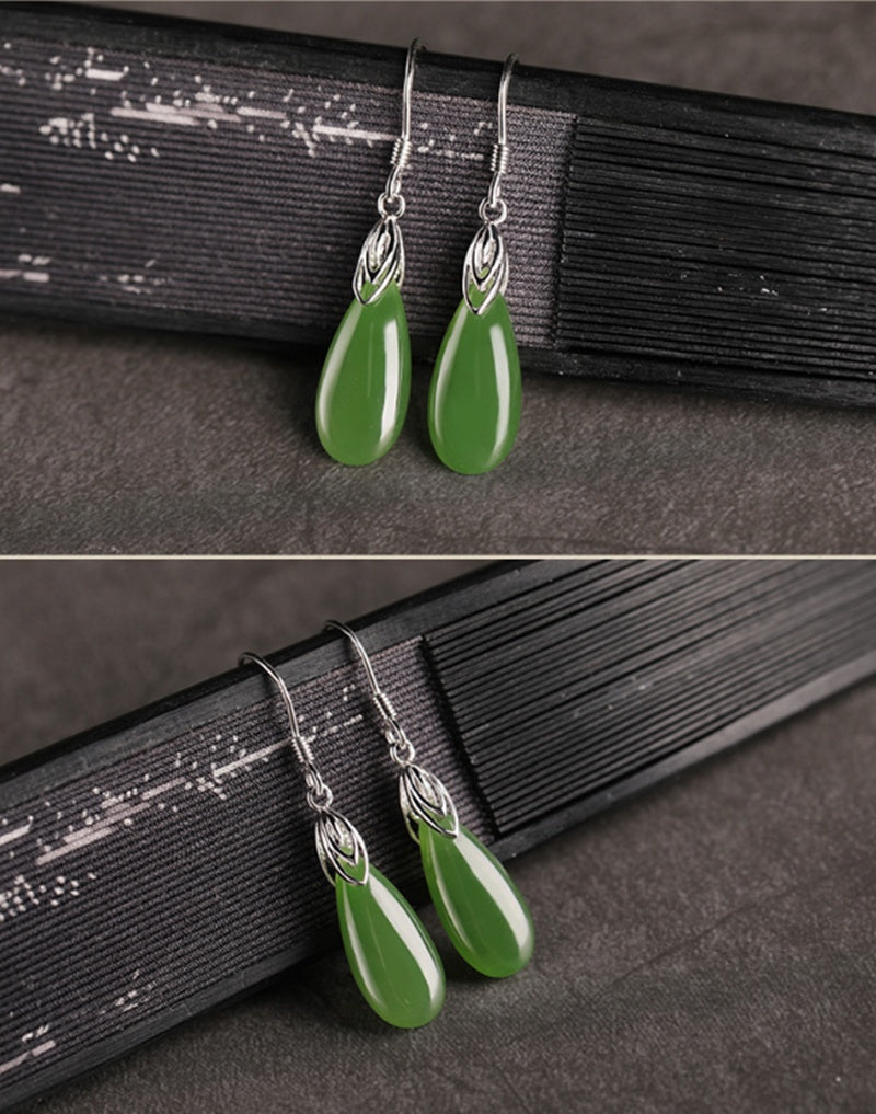 Women's Long Drop Jade Earrings With Vintage Earrings in Sterling Silver